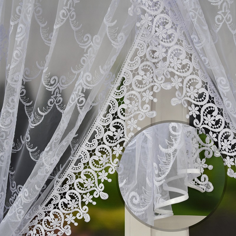 Zdjęcie firany poglądowe, z uwagi na dostępność dodatków gipiura wszywana do firany może różnić się wzorem od prezentowanej na zdjęciu, o aktualny wzór wszywanej gipiury można dopytać e-mailowo.