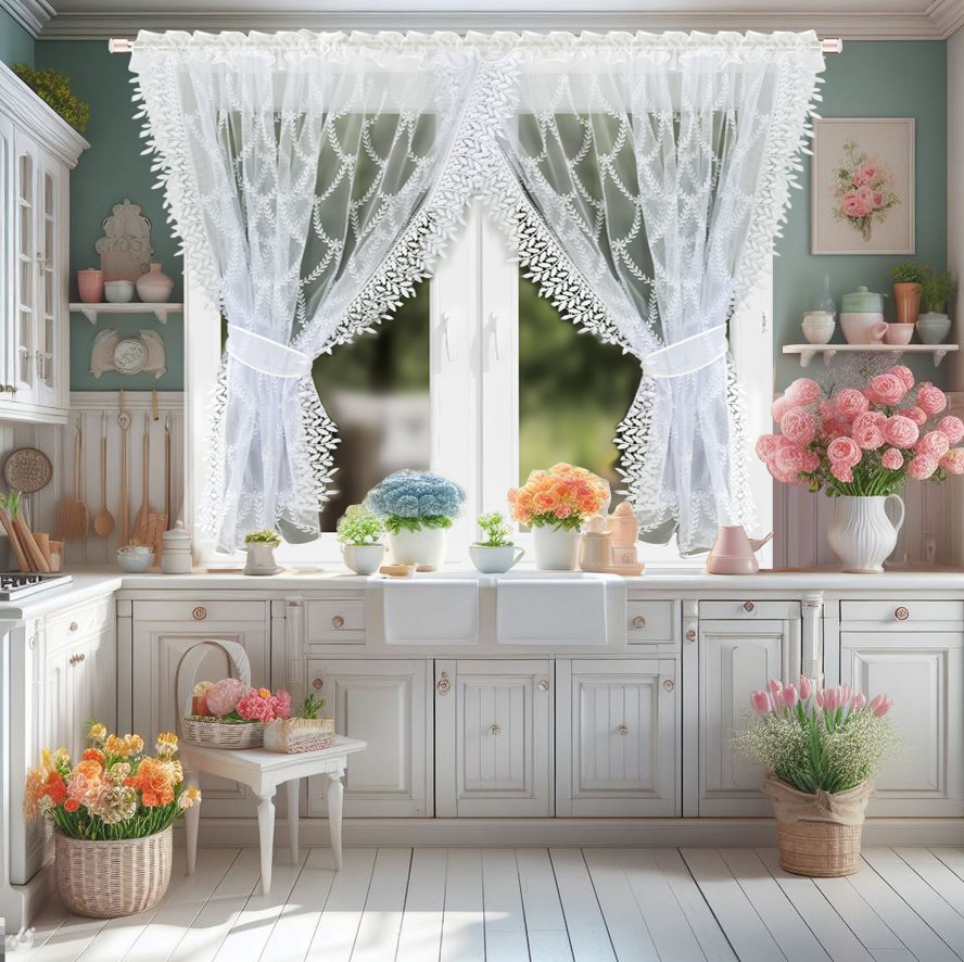Firana z Tiulu z Gipiurą do Kuchni Salonu 400x150 Eliza (ZFL)