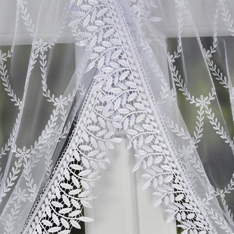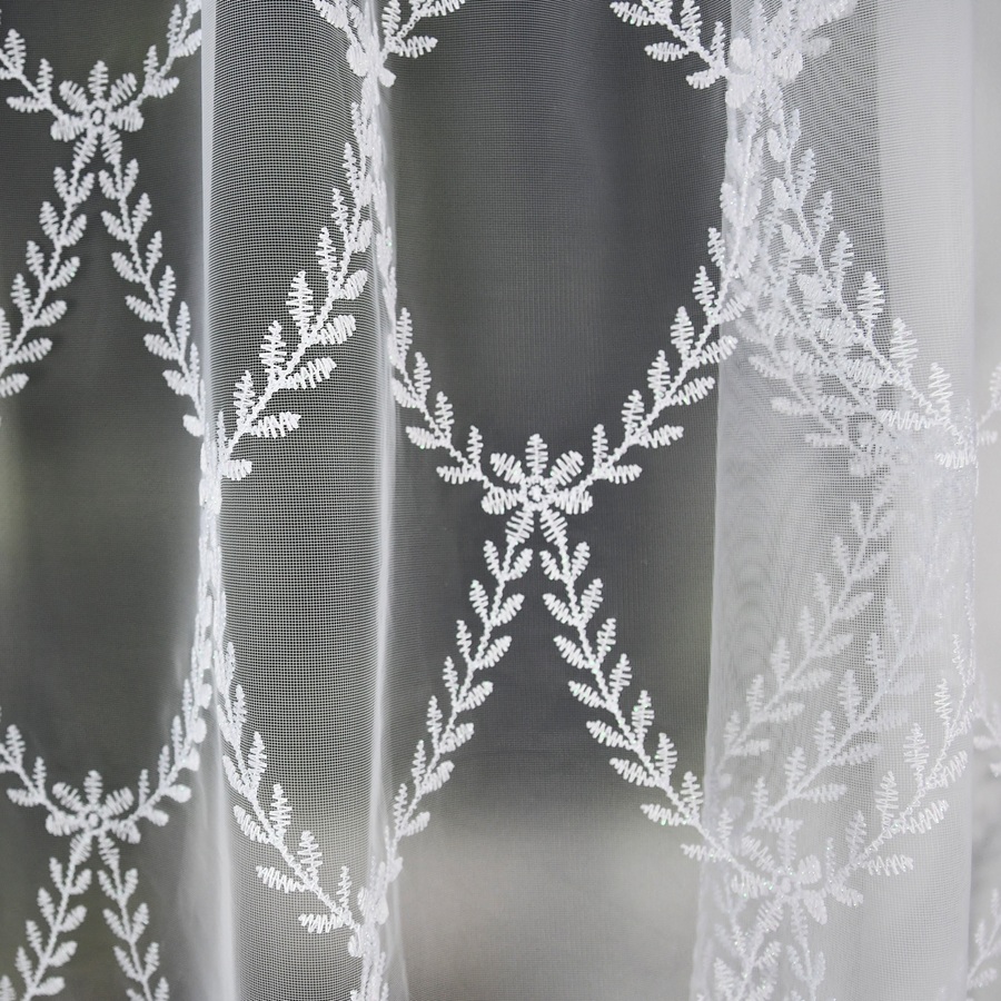 masz pytania?Firana uszyta z tiulu zdobionego haftem. Firana na bokach posiada piękną gipiurę. Wszyta taśma marszcząca pozwalająca wieszać na Żabki lub naciągnąć na karnisz na tunel. Dzięki delikatnej kompozycji nie zabierze światła słonecznego i sprawi że pokój lub kuchnia staną się przytulne.