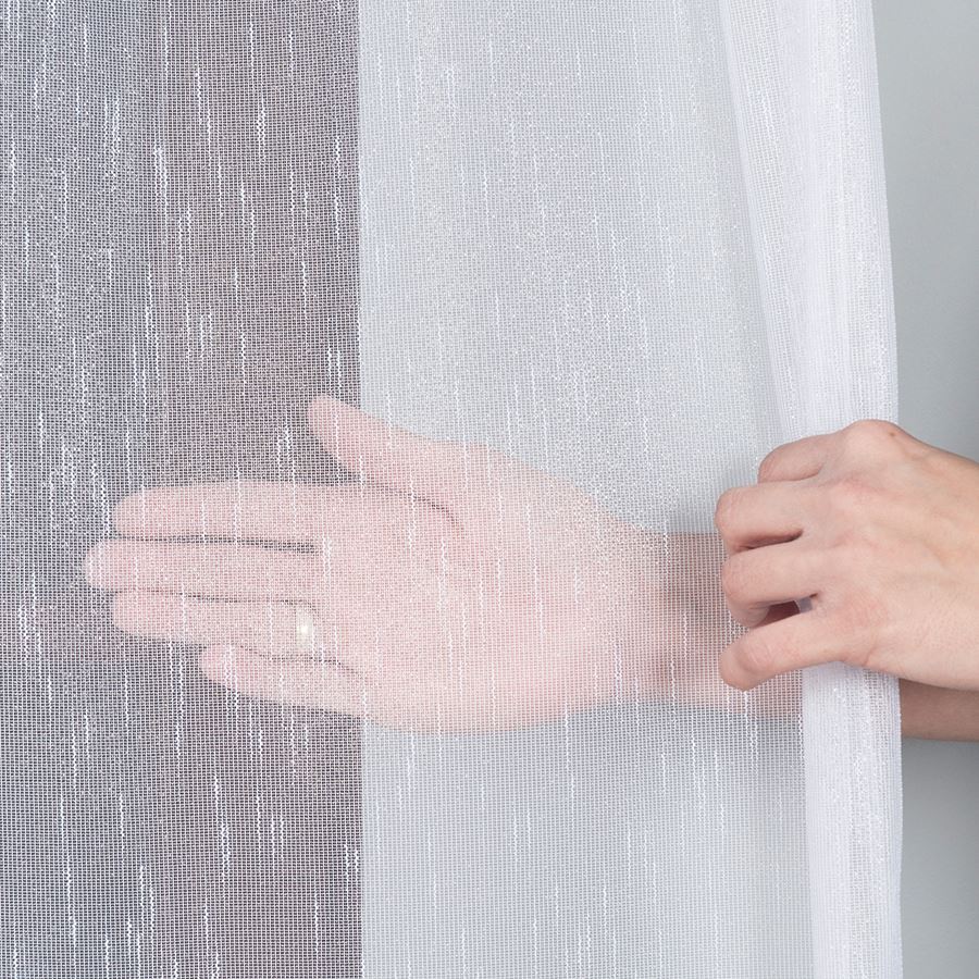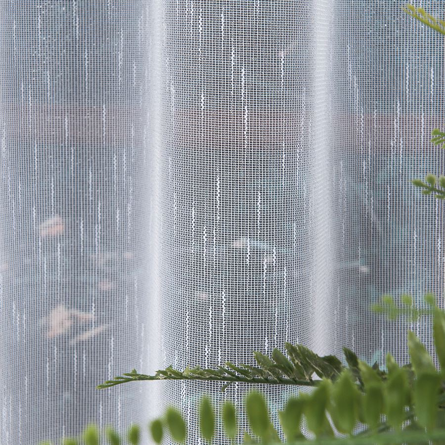 Nowoczesna tkanina dekoracyjna, ozdobiona wzorem drobnego deszczyku. Tkanina nie wymaga prasowania jest gładka. Maksymalna wysokość tej firany to 330 cm. Wzór w tkaninie biegnie w pionie. Firana jest skracana za dodatkową opłatą 25 PLN. Firana uszyta na taśmie marszczącej 1:2, po zmarszczeniu firana będzie mniejsza o połowę.