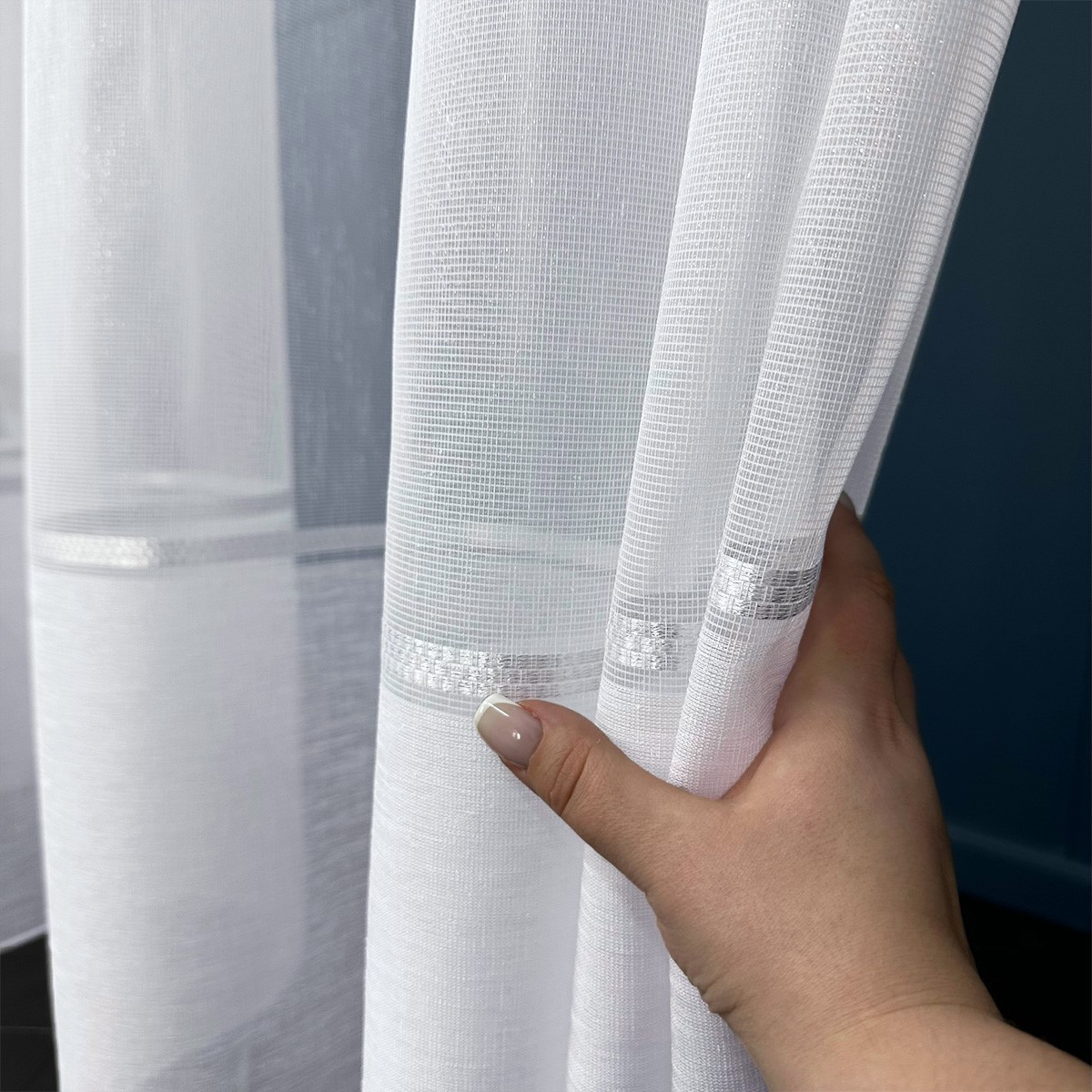 Firany Gotowe Do Salonu Zdobione Srebrnym Paskiem Praslin (SD)