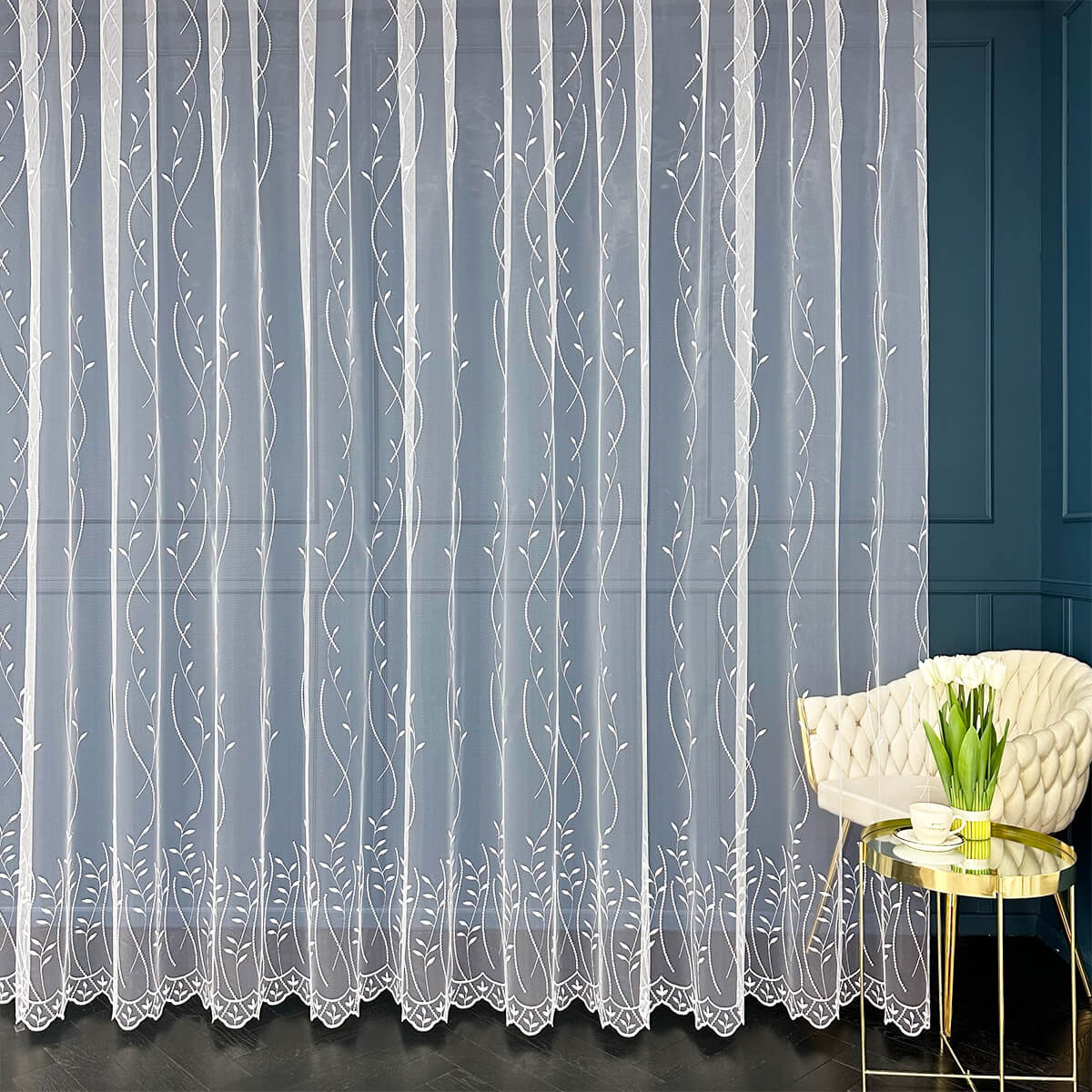 Firana Premium Haftowana Do Salonu Salamanca Biały Haft (SD)