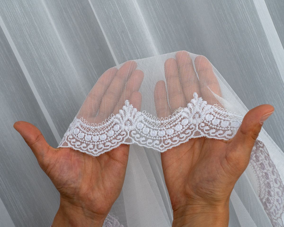 Firana Haftowana Białą Nicią. Dekoracja okienna uszyta na taśmie marszczącej, gotowa do zawieszenia uszyta. Firana z markizety bardzo dobrej jakościowo. Łatwa w utrzymaniu. Wzory na firanie haftowane białą nicią. Możliwe na zamówienie uszycie innych wymiarów. Prać w pralce do 40 C w worku do prania firan. Nie wymaga prasowania po praniu można wieszać na wilgotno. Skracanie Firan. Opłata za skrócenie tej firany 7 zł za 1 metr szerokości. W trakcie zamawiania proszę kliknąć pole „Serwis” i wybrać „skracanie Firany” Proszę w czasie zamówienia wpisać w polu komentarz na ile ma zostać skrócona.