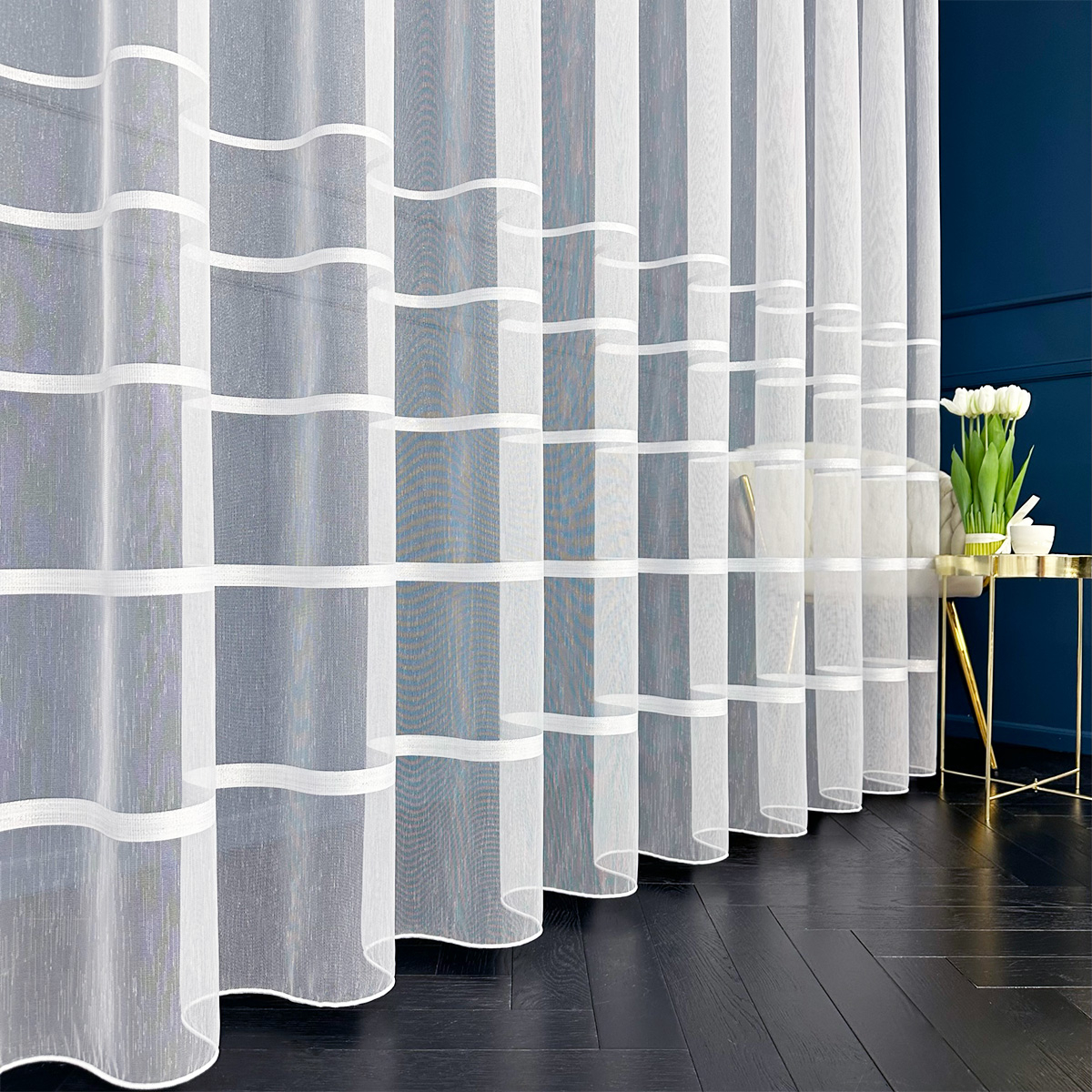 Firany do Salony w delikatne srebrne Paski Carlinda Silver (SD)